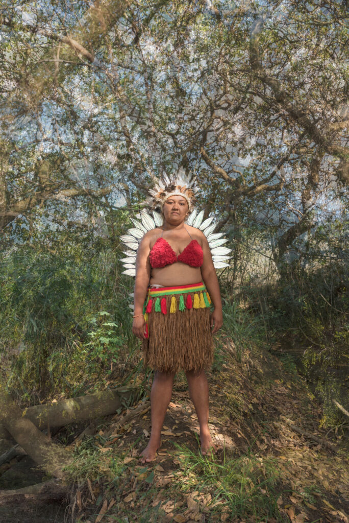 Là-bas, l’ONG Thydêwá a orchestré un atelier pour des femmes autochtones, en collaboration avec la journaliste Débora Pill. Ensemble, elles ont tissé des autoportraits sonores, empreints de leur quotidien et de leur relation intime avec la nature. Pour mettre en valeur ces différentes voix, le président de l’association m’a invité à co-réaliser des portraits photographiques avec ces femmes, ajoutant une dimension visuelle à leur expression sonore. Ce projet a donné naissance à une exposition à Ilhéus (BA), où de grandes bannières accompagnaient des casques audio diffusant leurs récits.